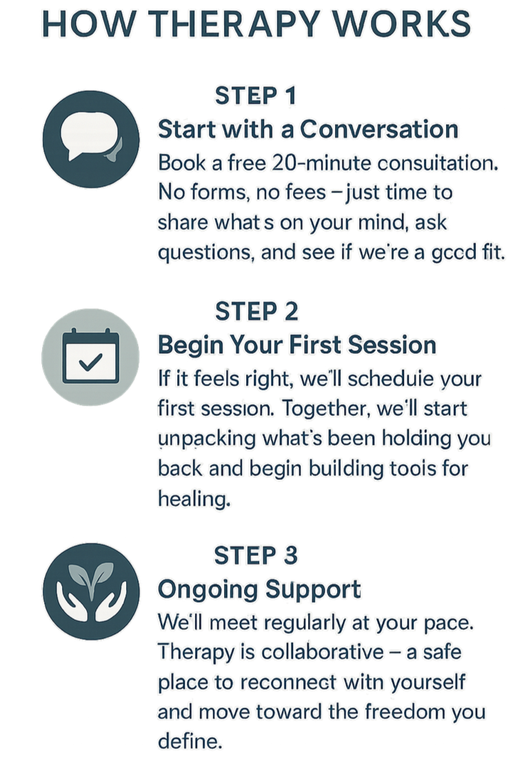 Many clients share that therapy helps them feel more grounded, less overwhelmed, and more at home in themselves.